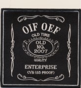 This is the 2007 cruise patch for VFA-86 (Sidewinders) for their OIF/OEF cruise in 2007. The Sidewinders fly the F-18 hornet out of MCAS Beaufort, SC. It is a knock-off of the Jack Daniels label. This patch does not have velcro attached.