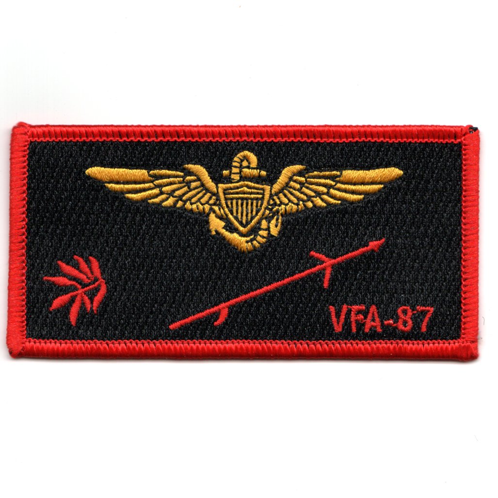 This is the black/red version of the nametag for the pilots for VFA-87. It goes with the black squadron patch and does not come with velcro attached so that you can get it embroidered.