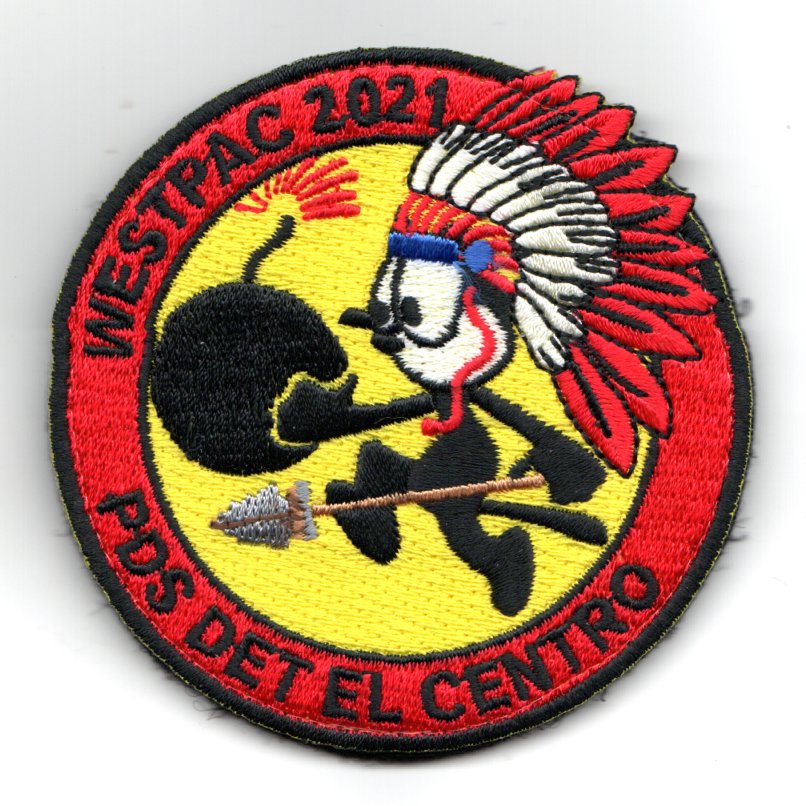 (Another AV8RSTUFF Creation): This is one of the WESTPAC 2021 patches created for VFA-87 and VFA-31. It shows “Felix” carrying the bomb, but wearing the “Bonnett”. Usually that’s called the “War Kitty”, but in this case, it was dubbed the “War Felix” patch. This was made for them for their initial workup phase at NAF EL CENTRO, CA in preparation for their upcoming deployment. This patch DOES have velcro attached.