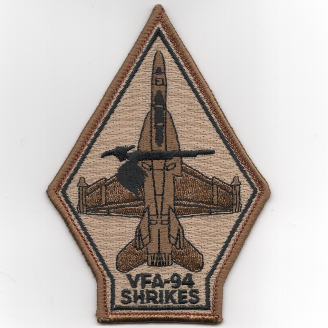 Based out of NAS Lemoore, CA flying the McDonnell Douglas F/A-18C Hornet, they were established in March 1952. They participated in Desert Storm in 1991 with CVW-11 and the USS Lincoln (CVN-72), but now call the Carl Vinson (CVN-70) their home along with their sister squadrons VFA-22 and VFA-97. This is the desert version of their ‘Coffin’ patch and does not come with velcro attached.
