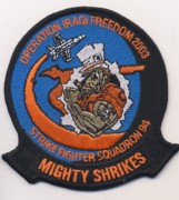 Based out of NAS Lemoore, CA flying the McDonnell Douglas F/A-18C Hornet, they were established in March 1952. They participated in Desert Storm in 1991 with CVW-11 and the USS Lincoln (CVN-72). They now fly from the deck of the Carl Vinson (CVN-70).