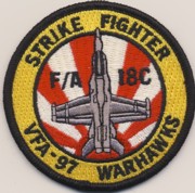 Based out of NAS Lemoore, CA flying the McDonnell Douglas F/A-18C Hornet, they fly with Airwing 11 onboard the USS Carl Vinson (CVN-70). This is a red/white rising sun version of their round aircraft patch.