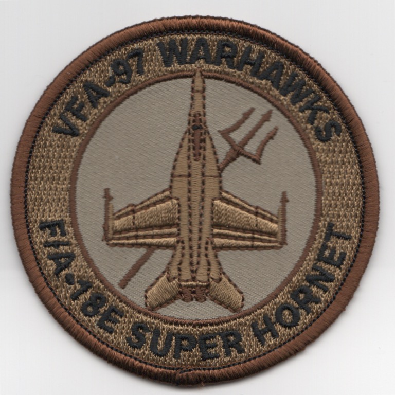 Based out of NAS Lemoore, CA flying the McDonnell Douglas F/A-18E Super Hornet, they fly with Airwing 11 onboard the USS John C. Stennis (CVN-74). This is the desert TWILL version of their round aircraft “bullet” patch they wear on the left sleeve of their flight suits. This patch does not come with velcro attached.