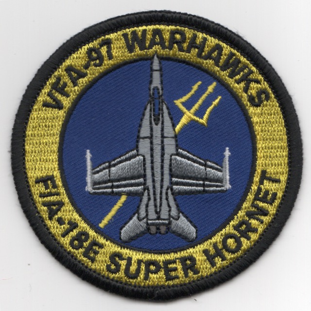 Based out of NAS Lemoore, CA flying the McDonnell Douglas F/A-18E Super Hornet, they fly with Airwing 11 onboard the USS John C. Stennis (CVN-74). This is one of the current versions (LIGHT yellow/blue middle) of their round aircraft “bullet” patch they wear on the left sleeve of their flight suits. This patch does not come with velcro attached.