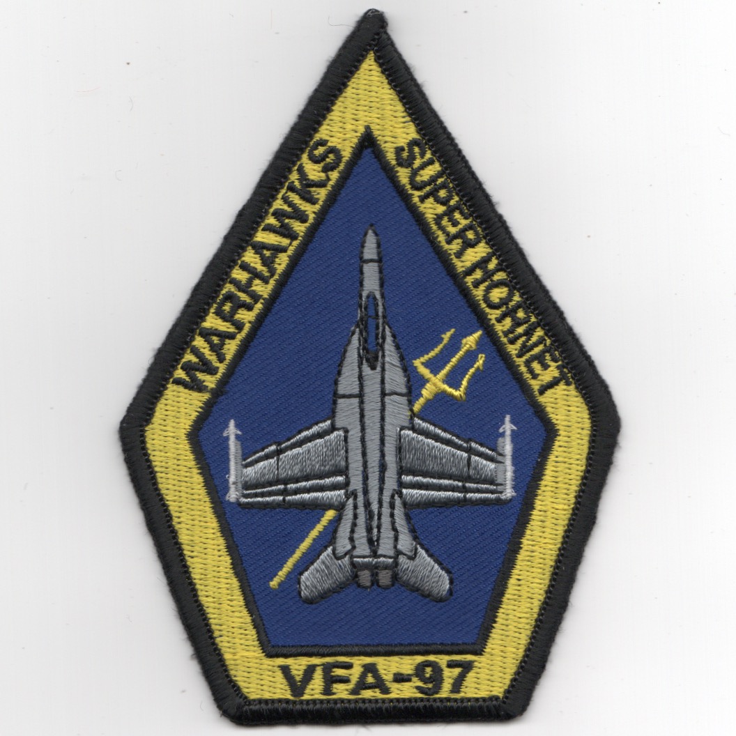 Based out of NAS Lemoore, CA flying the McDonnell Douglas F/A-18E Super Hornet, they fly with Airwing 11 onboard the USS John C. Stennis (CVN-74). This is one of the current versions (LIGHT yellow/blue middle) of their aircraft “coffin” patch they wear on the right sleeve of their flight suits. This patch does not come with velcro attached.