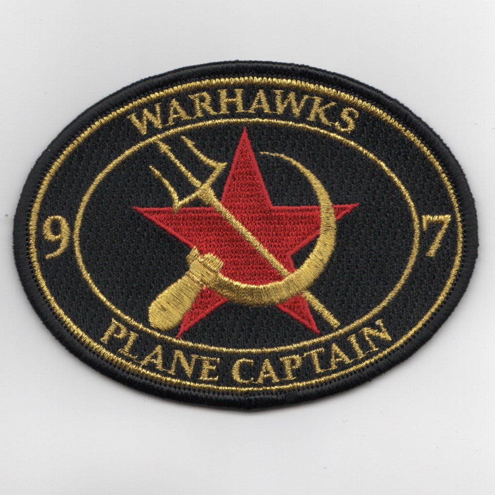 (Another AV8RSTUFF Creation): This is the VFA-97 “RED AIR” PLANE CAPTAIN patch for the VFA-97 WARHAWKS. The guys/gals that work on, launch, and recover the squadron birds wear these patches. This patch does not come with velcro attached as they use it to sew onto their jackets.