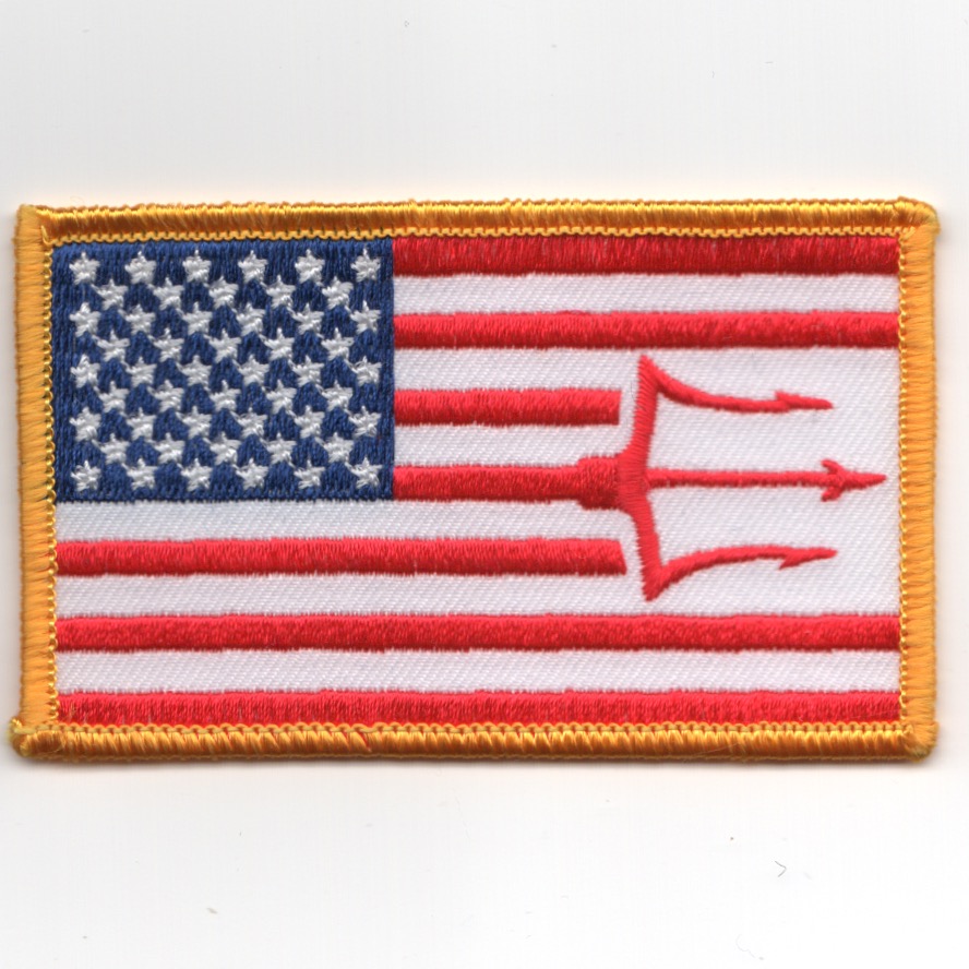 (Another AV8RSTUFF Creation): This is the Red/White/Blue version of the squadron “”””FLAG”””” patch with the “”””TRIDENT”””” (squadron logo) incorporated into it. This patch does not have velcro attached.