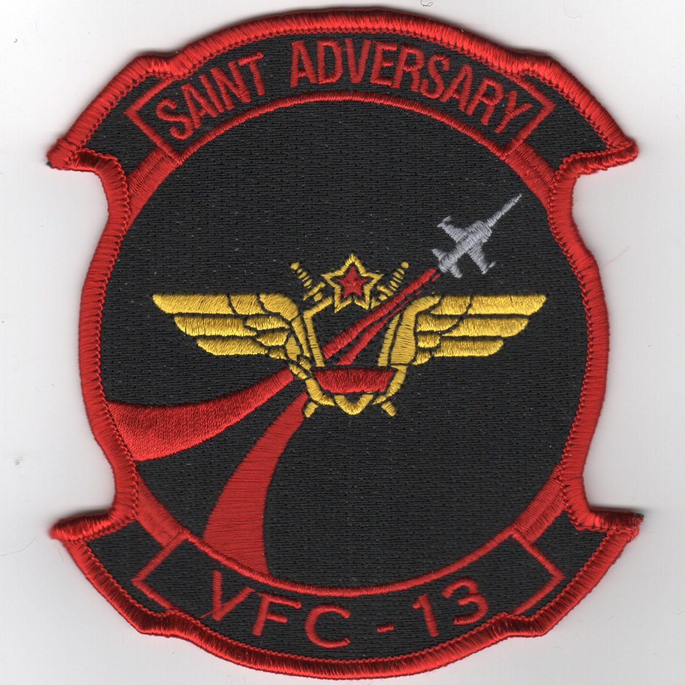 Based out of NAS Miramar, the “Saints” were the West Coast adversary ‘RED AIR’ squadron conducting air combat training for the Fleet squadrons with the A-4F and A-4M Skyhawks. This is the red/black version of their squadron patch and does NOT come with velcro attached.