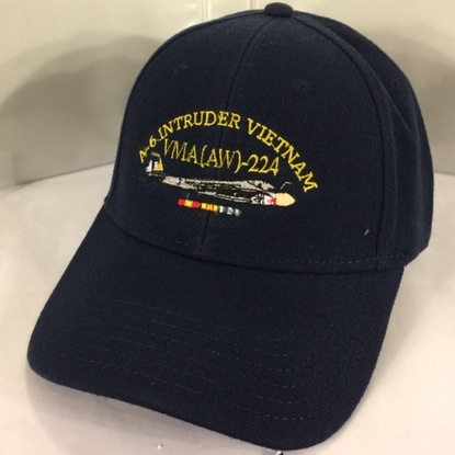 VMA-224 ‘Intruder Vietnam’ Ballcap (Dark Blue/ Directly Embroidered onto the cap) and has the three combat ribbons underneath.