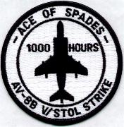 The ‘Ace of Spades’ fly the AV-8B Harrier out of MCAS Cherry Point, NC under the direction of MAG-32. This is the hours patch worn by those Harrier pilots with over 1000 Hours in type.