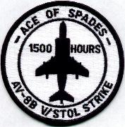 The ‘Ace of Spades’ fly the AV-8B Harrier out of MCAS Cherry Point, NC under the direction of MAG-32. This is the hours patch worn by those Harrier pilots with over 1500 Hours in type.