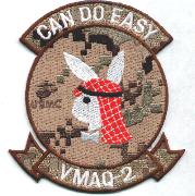 In July 1992, VMAQ-2 split into 3 separate squadrons and formed VMAQ-1, -2, & -3. The “Playboys” of VMAQ-2 fly the Grumman EA-6B Prowler out of MCAS Cherry Point, NC. There mascot is the world-famous “playboy” bunny and this is their “checkered-desert camoflauge” bunny wearing the red kheffiya with the “Can Do Easy” motto. This patch does not come with velcro attached.