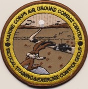 In 2000, the Marines from VMFA-115 (Silver Eagles) were deployed to participate in Combined Arms Exercise (CAEX) 9/10. This patch was commissioned to wear on the right sleeve of the maintenance coveralls/flightsuits – in desert colors. The patch shows Wiley E. Coyote watching a caravan of military vehicles in the desert. Across the top it says, “Marine Corps Air Ground Combat Center” and across the bottom it says, “Tactical Training&Exercise Control Group” Pretty sweet patch. This patch does not come with velcro attached.