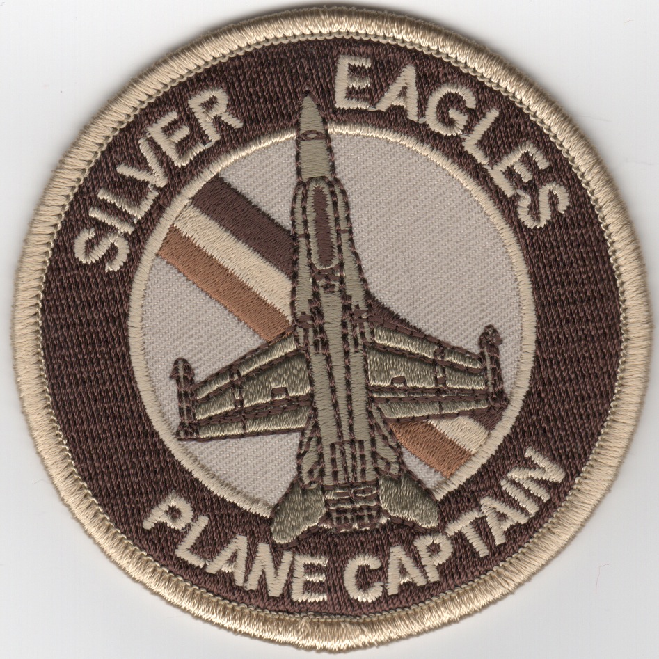The “Silver Eagles” of VMFA-115 fly the F/A-18A Hornet from MCAS Beaufort, SC. They flew the F-4 Phantoms under MAG-31 during Vietnam, then later transitioned to the A-model Hornets in 1985. They routinely deploy to MCAS Iwakuni, Japan. This is the desert bullet version of their “Plane Captain” patch they just made.