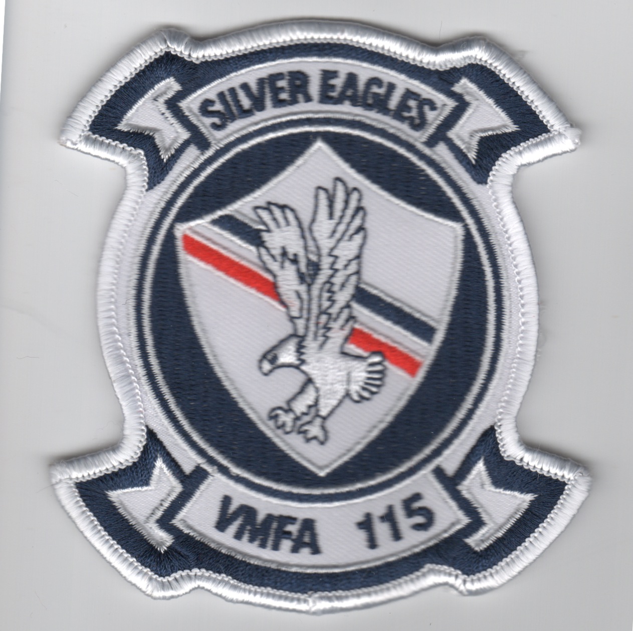 This is another AV8RSTUFF creation for the VMFA-115 ‘Silver Eagles’ of their white-bordered version (with the white eagle) on their squadron patch. The “Silver Eagles” of VMFA-115 fly the F/A-18A Hornet from MCAS Beaufort, SC. They flew the F-4 Phantoms under MAG-31 during Vietnam, then later transitioned to the A-model Hornets in 1985. They routinely deploy to MCAS Iwakuni, Japan. This patch does not come with velcro already attached.