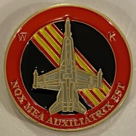 The ‘Bengals’ of VMFA(AW)-224 flew the A=6E Intruder out of MCAS Cherry Point, NC, but transitioned to the F/A-18D Hornet. Marine All Weather Fighter Attack Squadron 224 (VMFA(AW)-224) is a USMC F/A-18 Hornet squadron known as the “Fighting Bengals”. The squadron is based at MCAS Beaufort, SC and falls under the command of Marine Aircraft Group 31 (MAG-31) and the 2nd Marine Aircraft Wing (2nd MAW). The Bengals are one of only two Marine F/A-18D Hornet Squadrons currently operating (2023) out of MCAS Beaufort, S.C. The other is the VMFA-115 Hawks. This is the FRONT VIEW of their coin.