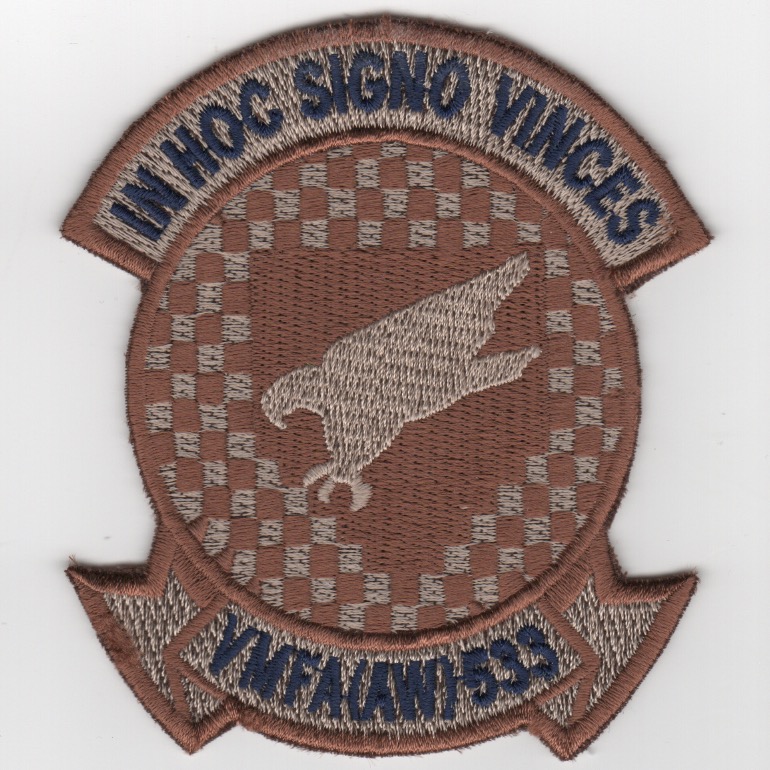 Marine All-Weather Fighter Attack Squadron 533 (VMFA(AW)-533) is a USMC F/A-18 Hornet squadron. Also known as the “Hawks”, the squadron is based at Marine Corps Air Station Beaufort, SC and falls under the command of Marine Aircraft Group 31 (MAG-31) and the 2nd Marine Aircraft Wing (2nd MAW). This is the desert version of the squadron patch and was found in a Korean embroidery shop. No velcro attached.