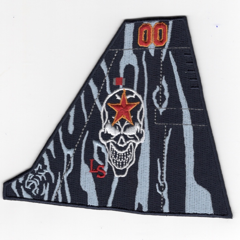 The ‘Snipers’ of VMFT-401 are an adversary squadron flying the F-5E/F out of MCAS Yuma, AZ. They were the last adversary squadron to fly the KFIR F-21 Israeli aircraft. This is their F-5N Tailfin patch depicting the SKULL with the star on forehead and has gray stripes (painted after one of their jets) and does not come with velcro attached.
