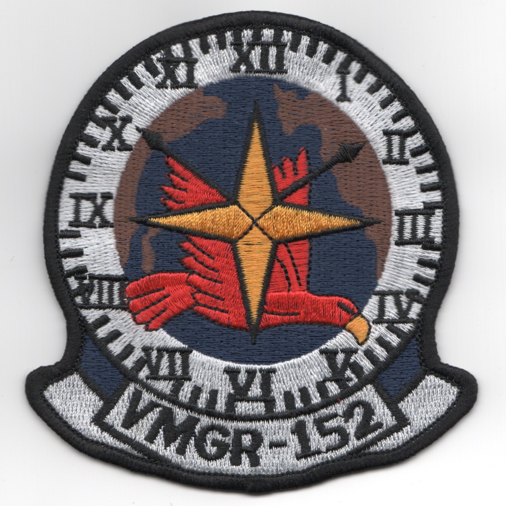 Marine Aerial Refueler Transport Squadron 152 (VMGR-152) provides aerial refueling service to support Fleet Marine Force (FMF) air operations; and provides assault air transport of personnel, equipment, and supplies. The squadron, known as the “Sumos”, flies the fixed-wing Lockheed Martin KC-130J aircraft. VMGR-152 is stationed at Marine Corps Air Station Iwakuni, Iwakuni, Japan and is part of Marine Aircraft Group 12 (MAG-12) and the 1st Marine Aircraft Wing (1st MAW). This is the white version of their squadron patch.