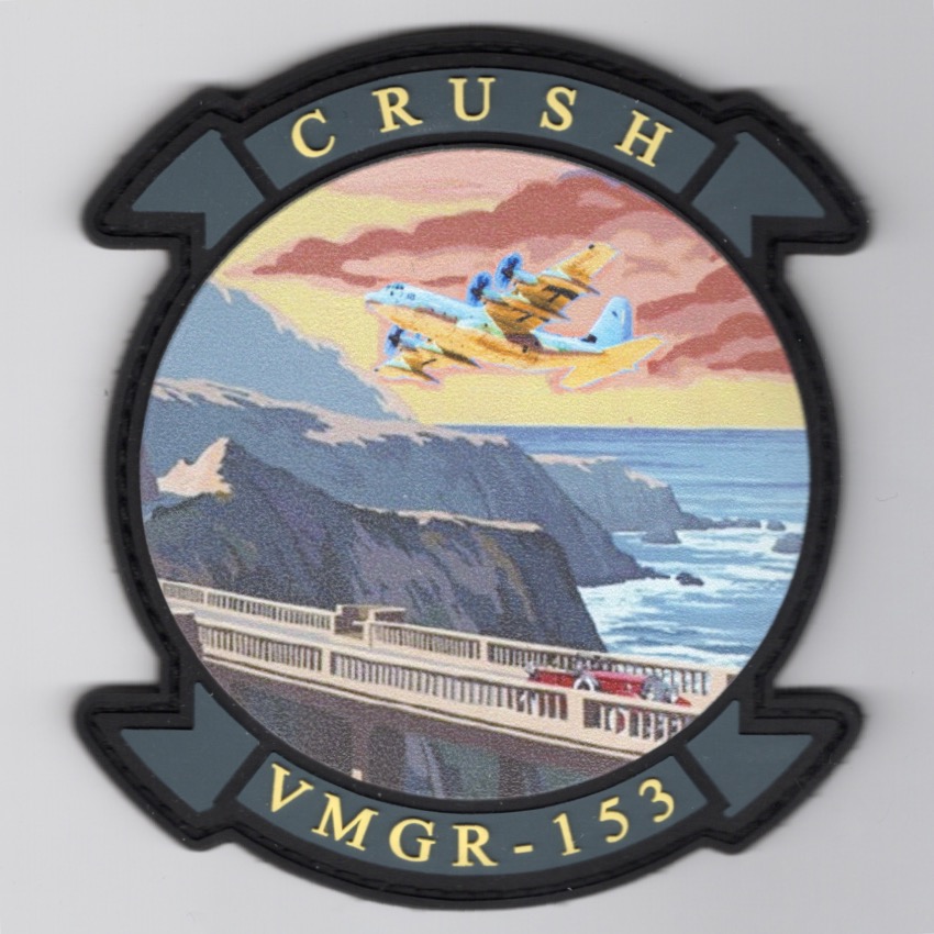 (Another AV8RSTUFF Creation): Marine Aerial Refueler Transport Squadron 153 (VMGR-153) is a US Marine Corps KC-130J squadron. The squadron is a part of Marine Aircraft Group 24 (MAG-24), 1st Marine Aircraft Wing (1st MAW) and provides both fixed-wing and rotary-wing aerial refueling capabilities to support Fleet Marine Force (FMF) air operations in addition to assault air transport of personnel, equipment, and supplies. VMGR-153 is part of Marine Aircraft Group 24 (MAG-24) and was reactivated on January 13, 2023 at MCAS Kaneohe Bay, Hawaii. Over the course of the first two years, the squadron received their full complement of 17 aircraft. This is the *2-Tab/PVC* version of their 2026 DET Squadron patch depicting a MV-22 flying over a bridge. This patch is worn by aircrew and DOES come with velcro attached.