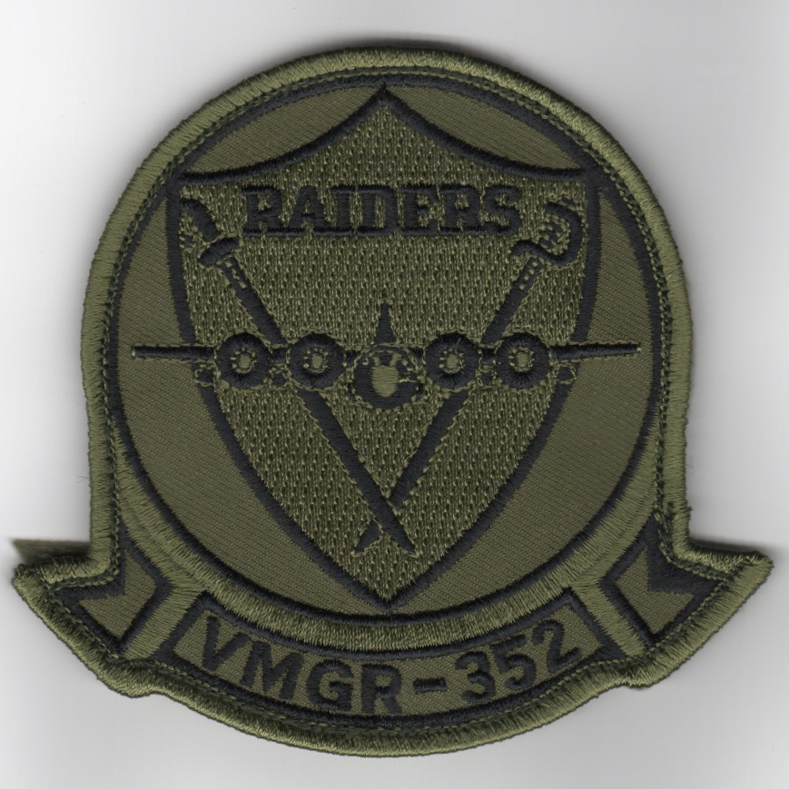Marine Aerial Refueler Transport Squadron 352 (VMGR-352) is a United States Marine Corps KC-130J squadron. They are a part of Marine Aircraft Group 11 (MAG-11), 3rd Marine Aircraft Wing (3rd MAW) and provide both fixed-wing and rotary-wing aerial refueling capabilities to support Fleet Marine Force (FMF) air operations in addition to assault air transport of personnel, equipment, and supplies. The squadron, known as the “Raiders” is stationed at Marine Corps Air Station Miramar, California. This is the subdued version of the VMGR-352 “Raiders” squadron patch and comes with velcro already attached.