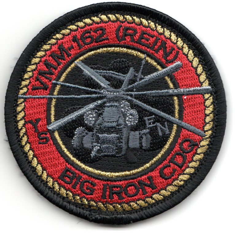 Marine Medium Tiltrotor Squadron 162 (VMM-162) is a United States Marine Corps tiltrotor squadron consisting of MV-22 Osprey transport aircraft. The squadron, known as the “Golden Eagles”, is based at MCAS New River, NC and falls under the command of Marine Aircraft Group 26 (MAG-26) and the 2nd Marine Aircraft Wing (2nd MAW). HMM-162 officially stood down December 9, 2005 to begin the process of transitioning to the MV-22 Osprey. On August 31, 2006, the squadron was reactivated as the second operational Osprey squadron in the Marine Corps. This is one of their detachment patches created that says “BIG IRON CDQ” along the bottom, has ‘EN’ sublimated beside the helo, has ‘YS’ in the left margin, and does comes with velcro attached.