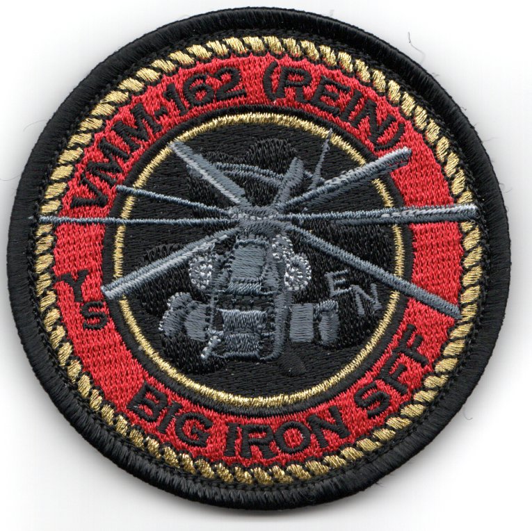 Marine Medium Tiltrotor Squadron 162 (VMM-162) is a United States Marine Corps tiltrotor squadron consisting of MV-22 Osprey transport aircraft. The squadron, known as the “Golden Eagles”, is based at MCAS New River, NC and falls under the command of Marine Aircraft Group 26 (MAG-26) and the 2nd Marine Aircraft Wing (2nd MAW). HMM-162 officially stood down December 9, 2005 to begin the process of transitioning to the MV-22 Osprey. On August 31, 2006, the squadron was reactivated as the second operational Osprey squadron in the Marine Corps. This is one of their detachment patches created that says “BIG IRON SFF” along the bottom, has ‘EN’ sublimated beside the helo, has ‘YS’ in the left margin, and does comes with velcro attached.