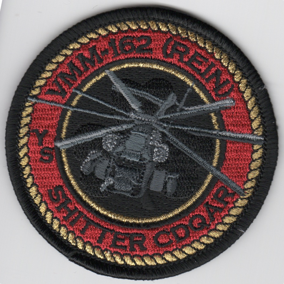 Marine Medium Tiltrotor Squadron 162 (VMM-162) is a United States Marine Corps tiltrotor squadron consisting of MV-22 Osprey transport aircraft. The squadron, known as the “Golden Eagles”, is based at MCAS New River, NC and falls under the command of Marine Aircraft Group 26 (MAG-26) and the 2nd Marine Aircraft Wing (2nd MAW). HMM-162 officially stood down December 9, 2005 to begin the process of transitioning to the MV-22 Osprey. On August 31, 2006, the squadron was reactivated as the second operational Osprey squadron in the Marine Corps. This is one (of nine) of their detachment patches created that says “SHITTER CDQAR” along the bottom, and does not comes with velcro attached.