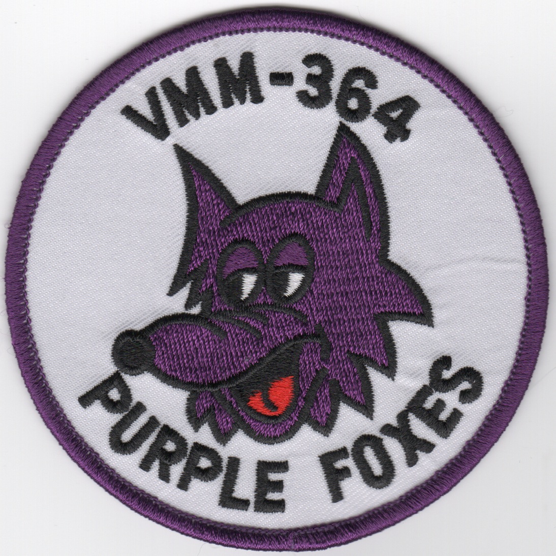 This is the white version of the squadron patch for the VMM-364 ‘Purple Foxes’, a United States Marine Corps medium-lift tiltrotor squadron consisting of MV-22B Ospreys. The squadron, known as the “Purple Foxes”, is based at Marine Corps Air Station Camp Pendleton, California and falls under the command of Marine Aircraft Group 39 (MAG-39) and the 3rd Marine Aircraft Wing (3rd MAW). This patch does not have velcro already attached.
