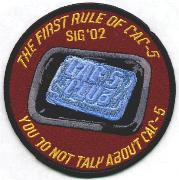 The ‘Red Lancers’ of VP-10 fly the P-3C Orion out of NAS Brunswick, ME. They were established in March 1951 and currently are flying their “Outlaw Hunter” version of the Orion that uses Over the Horizon (OTH) technology to detect targets. This is their latest det patch from CAC-5 to Sigonella, Spain in 2002. It was designed after the “Fight Club”.