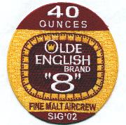 The ‘Red Lancers’ of VP-10 fly the P-3C Orion out of NAS Brunswick, ME. They were established in March 1951 and currently are flying their “Outlaw Hunter” version of the Orion that uses Over the Horizon (OTH) technology to detect targets. This is the det patch from CAC-8 to Sigonella, Spain in 2002. It’s designed after the beferage of choice while there.