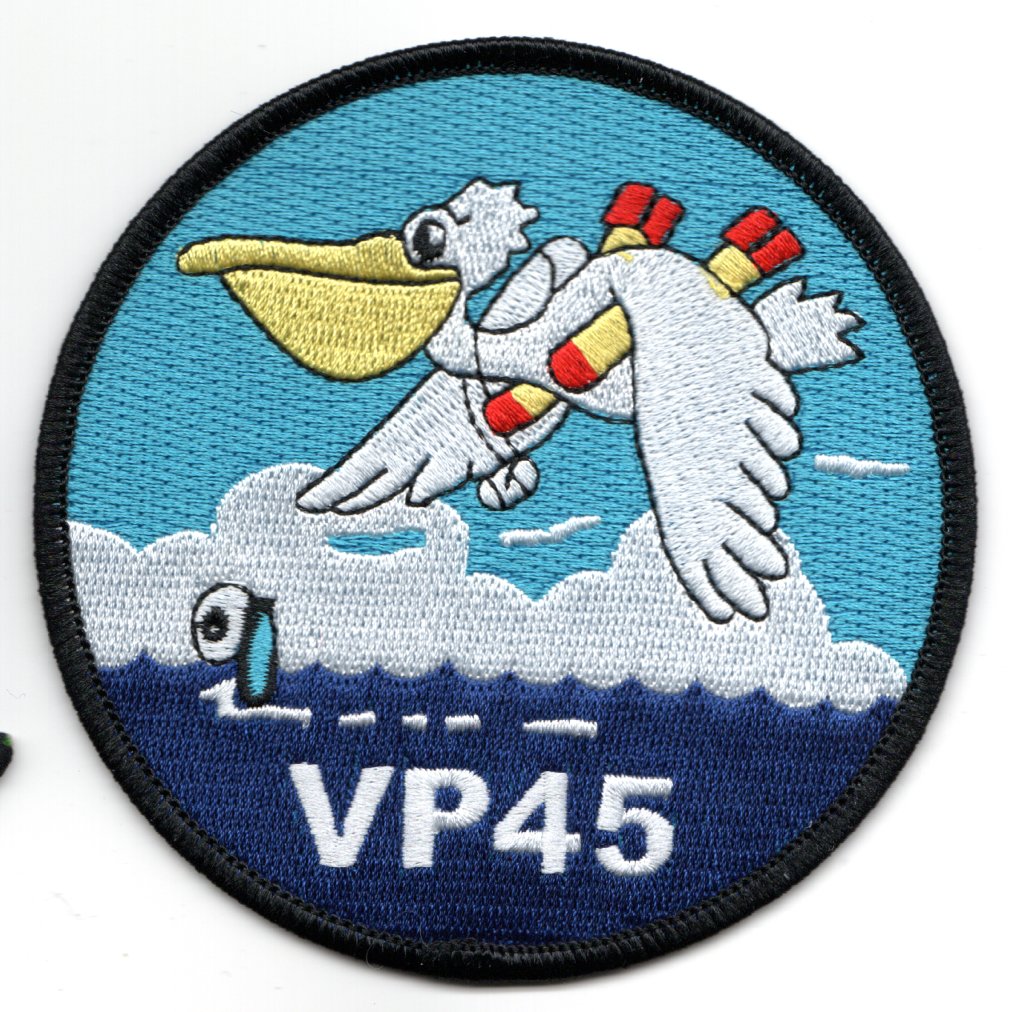 The ‘Pelicans’ fly the P-3C Orion out of NAS Jacksonville, FL. They were established in November 1942 and operated throughout WW II. They also participated in Operation Market Time (Vietnam infiltration). Their claim to fame is the sighting of the Loch Ness monster and claimed to have tracked her using radar and sonobuoys for 2 hours! This is the black-bordered version of the squadron patch and does not come with velcro attached.