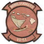 VR’ denotes ‘Fleet Logistic Support Squadron’ and operate several different types of aircraft. The “Flamin’ Hookers” of VR-51 operated the C-9B out of NAS Glenview, IL and were established 01 November 1970. This patch is for the current VR-51 ‘Windjammers’. The Windjammers were commissioned in 1997. They fly the C-20G out of MCBH. They contribute to the logistics effort with their long-range aircraft.