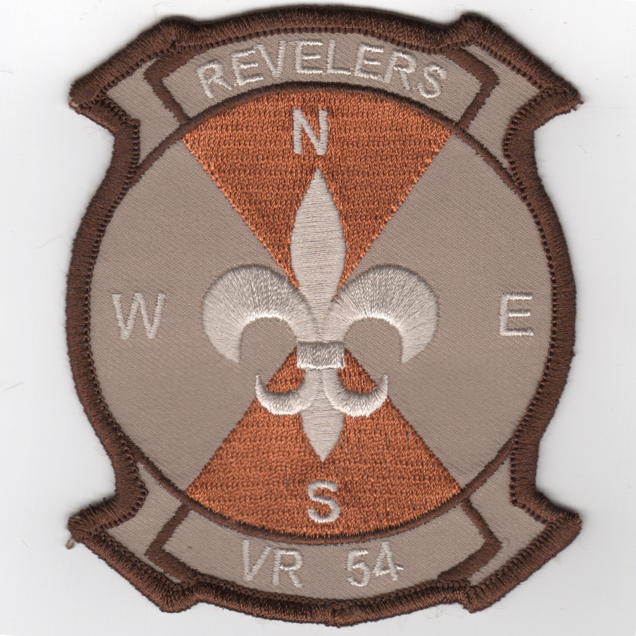 VR’ denotes ‘Fleet Logistic Support Squadron’ and operate several different types of aircraft. The “Revelers” of VR-54 operate the C-130T Hercules out of NAS New Orleans, LA and were established 01 June 1991. They contribute to the logistics effort with their six tactical and long-range aircraft. This is the desert version of their squadron patch and does not come with velcro attached.