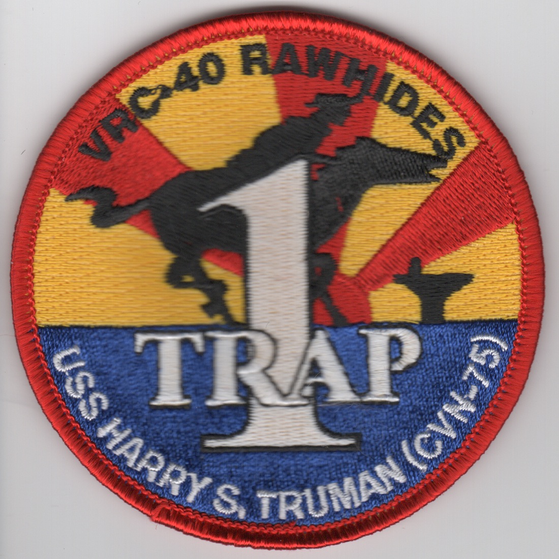 The “Rawhides” of VRC-40 fly the C-2A out of NAS Norfolk, VA and were established in July 1960. They were originally known as ‘Codfish Airlines’ and have supported Atlantic Fleet operations the entire time. This is their ‘1-Trap’ patch created for those with “just one trap” onboard the USS Harry S. Truman (CVN-75). This patch does NOT come with velcro already attached.