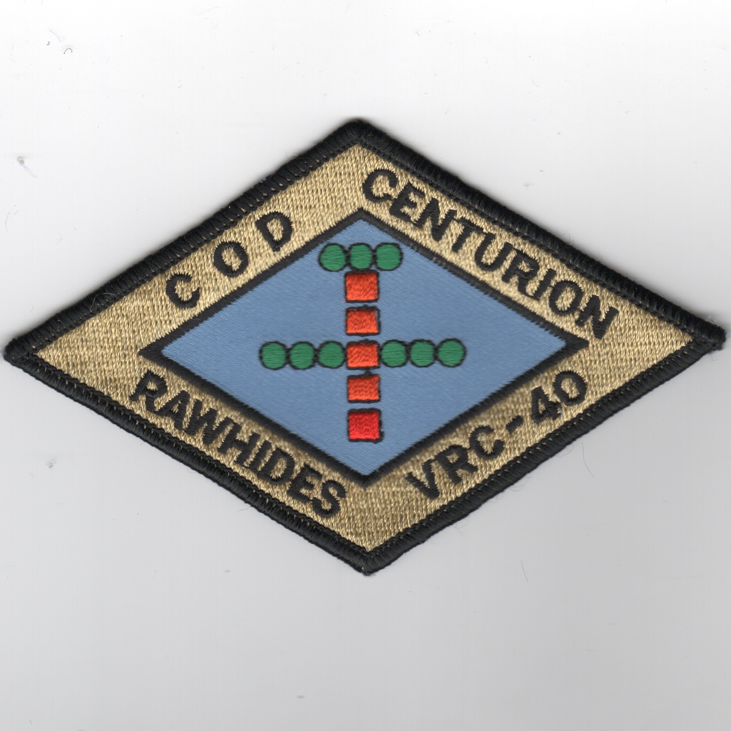 The “Rawhides” of VRC-40 fly the C-2A out of NAS Norfolk, VA and were established in July 1960. They were originally known as ‘Codfish Airlines’ and have supported Atlantic Fleet operations the entire time. This is their ‘CENTURION’ patch created for those with 100 traps while in VRC-40. This patch does NOT come with velcro already attached.