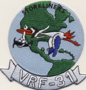 This is the squadron patch for VRF-31. They flew the A-4 Skyhawks and were based out of Norfolk. They were established in 1957 and de-established in 1986. This is a reproduction patch.