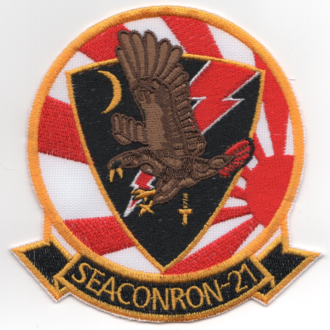 (Korean) The “Fighting Redtails” of VS-21 acquired their original designation in March 1945. They were redesignated in April 1950 to their current tailcode. They currently fly the S-3B out of NAS Atsugi, Japan as part of CVW-5. This version of the squadron patch is the color version I found in a small, Korean patch shop and does not come with velcro attached.