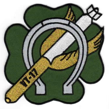 This is another of the “historical” patches created by VFA-25 recently. What was to become the FIST of the FLEET was conceived on September 15, 1941, when the keel of the USS BUNKER HILL (CV-17) was laid. On January 1 1943, VT-17 was formed under the command of LCDR Frank W. ÒSilver FoxÓ Whitaker. In those previous fifteen months, the US Navy was busy recruiting, training, and purchasing the aircraft and thousands of items the squadron would need when the USS Bunker Hill was commissioned on May 24, 1943. CVG-17 was also formed on January 1, 1943. This air group became CVBG-17, then CVBG-5 in 1946 and redesignated CVG-6 in 1948. It became CVW-6 in 1963 and was disestablished on April 1, 1992. Numerical designation of air groups began in 1942, many numbered according to their assigned ship (CV-17 .. CVG-17) and each ship had a distinctive graphic design for its aircraft. Aircraft assigned to USS Bunker Hill were identified with a vertical arrow on the tail. The ÒFist of the FleetÓ began as Torpedo Squadron 17 (VT-17) at NAS Norfolk (Virginia), initially assigned TBF-1 then TBM-1C aircraft as part of Air Group 17 (CVG-17). The TBM Avenger was the same as the Grumman designed TBF, but built by Eastern Aircraft, a division of General Motors. This patch has the “DARKER green” background with GOLD threads and does not come with velcro attached.