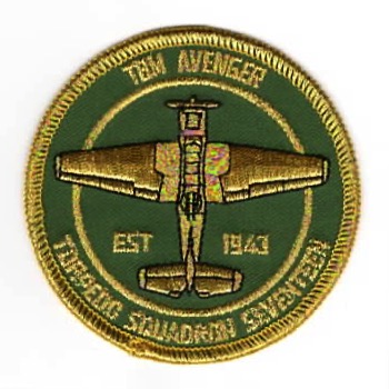 This is another “historical” aircraft bullet patch created by VFA-25 recently. What was to become the FIST of the FLEET was conceived on September 15, 1941, when the keel of the USS BUNKER HILL (CV-17) was laid. On January 1 1943, VT-17 was formed under the command of LCDR Frank W. ÒSilver FoxÓ Whitaker. In those previous fifteen months, the US Navy was busy recruiting, training, and purchasing the aircraft and thousands of items the squadron would need when the USS Bunker Hill was commissioned on May 24, 1943. CVG-17 was also formed on January 1, 1943. This air group became CVBG-17, then CVBG-5 in 1946 and redesignated CVG-6 in 1948. It became CVW-6 in 1963 and was disestablished on April 1, 1992. Numerical designation of air groups began in 1942, many numbered according to their assigned ship (CV-17 .. CVG-17) and each ship had a distinctive graphic design for its aircraft. Aircraft assigned to USS Bunker Hill were identified with a vertical arrow on the tail. The ÒFist of the FleetÓ began as Torpedo Squadron 17 (VT-17) at NAS Norfolk (Virginia), initially assigned TBF-1 then TBM-1C aircraft as part of Air Group 17 (CVG-17). The TBM Avenger was the same as the Grumman designed TBF, but built by Eastern Aircraft, a division of General Motors. This patch has the GOLD aircraft and does not come with velcro attached.
