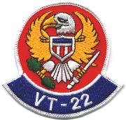 This is the color version of VT-22’s squadron patch. The “King Eagles” of VT-22 fly the TA-4J and T-45A Goshawk out of NAS Kingsville, TX. They trace their lineage to 13 June 1949 when Advanced Training Unit (ATU) Six was formed at NAS Corpus Christi, TX. They changed names and locations several more times until August 1970 when their name and base became what it is today.
