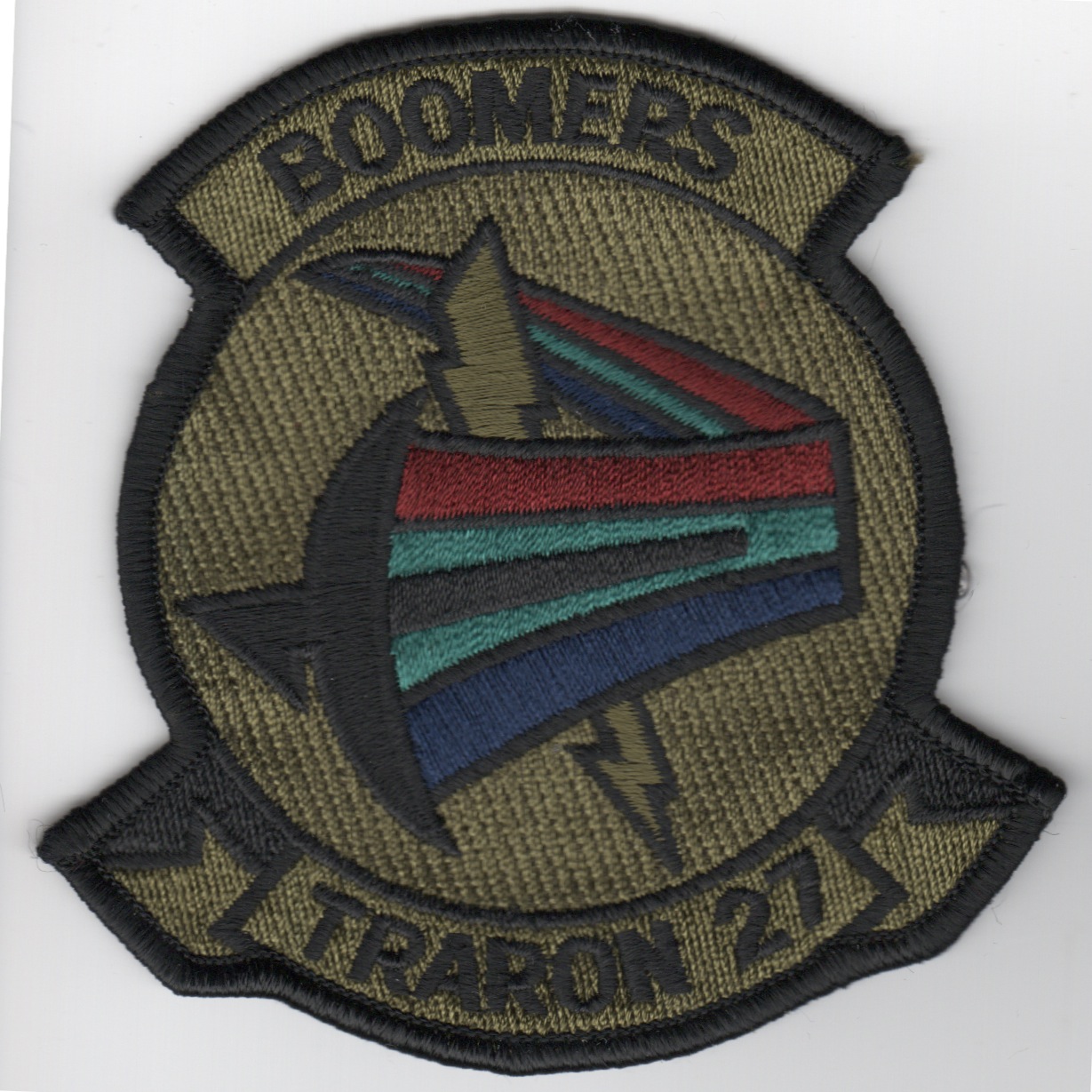 VT-27 is one of the United States Navy’s five primary training squadrons. They were initially established on July 11, 1951 as Advanced Training Unit-B at Naval Air Station, Corpus Christi. The command subsequently moved to Kingsville in 1952, then again to New Iberia, Louisiana in 1960 where the squadron was redesignated VT-27. In July 1964, the “Boomers” were returned to Naval Air Station, Corpus Christie, TX.Ê In 1973, the squadron began a transition to the role of a primary training squadron with the arrival of the first T-28 Trojan. This is the subdued version of their squadron patch and does not come with velcro already attached.