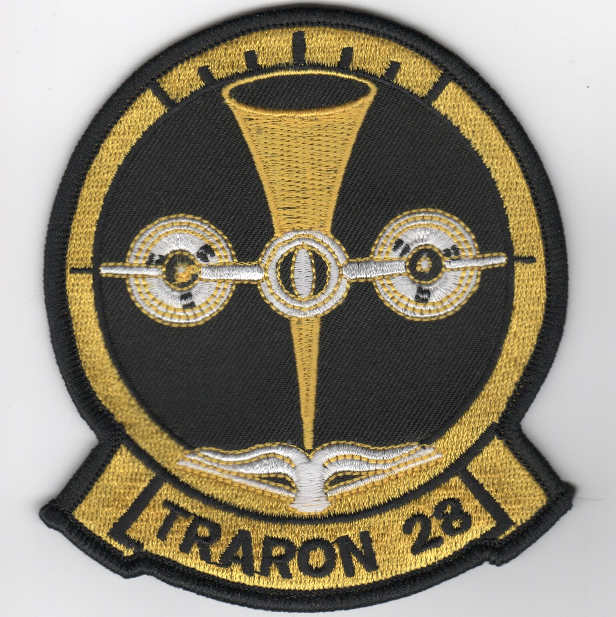 This is the old, historical version of the squadron patch for TRARON-28. This is a reproduction patch. It does NOT come with velcro attached.