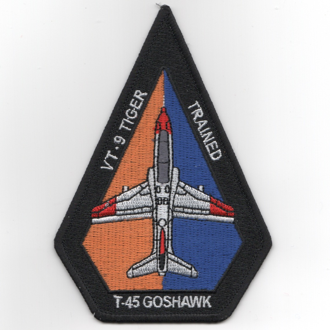 This is the color version of the aircraft ‘coffin’ patch created for the VT-7 ‘Eagles’ that fly the T/A-4J out of NAS Meridian, MS (my hometown). The VT-9 Tigers is one of four U.S. Navy strike jet training squadrons and complete the syllabus by performing a series of scrutinized arrested landings on an aircraft carrier.
