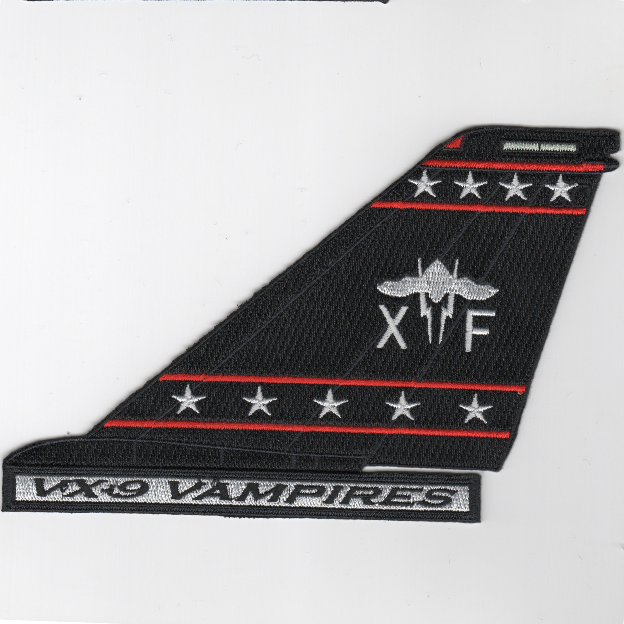 This is the black version with their “”””BAT”””” mascot of the VX-9 Vampires tailfin with the squadron desgination along the bottom. This patch does not come with velcro already attached.