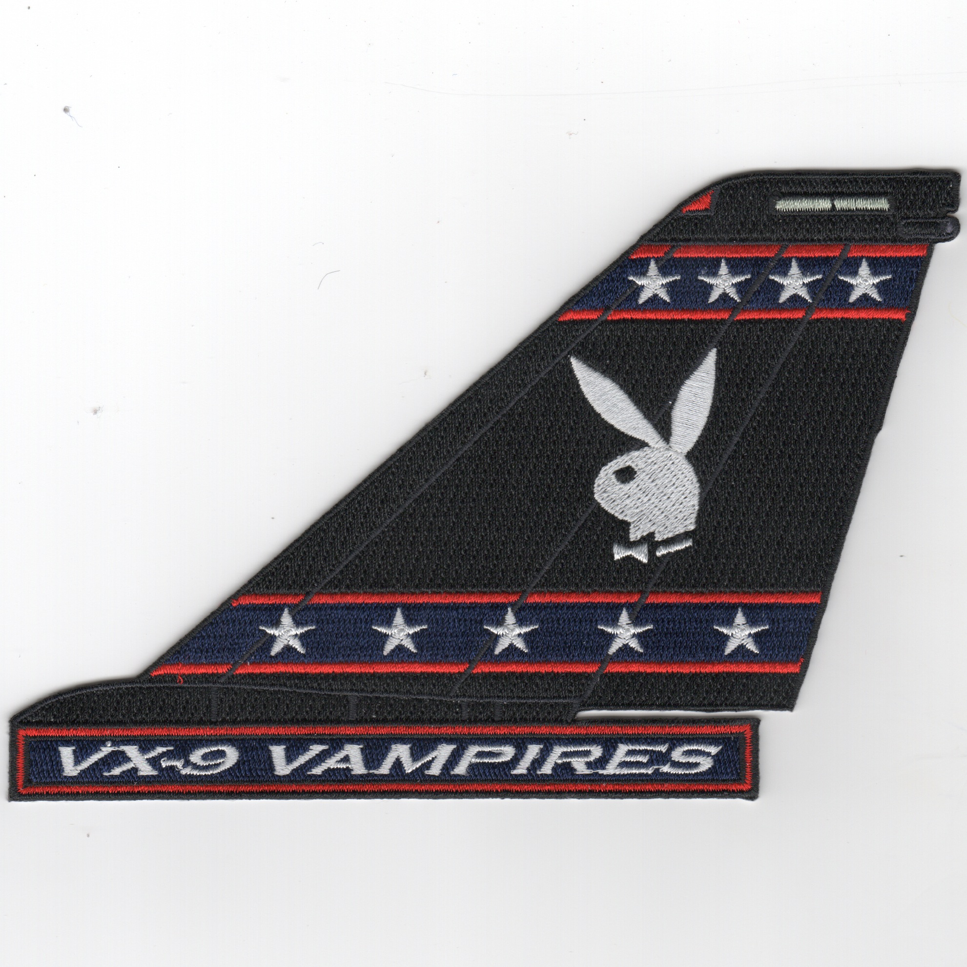 This is the black version with the Playboy Bunny silhouette of the VX-9 Vampires tailfin with the squadron desgination along the bottom. This patch does not come with velcro already attached.