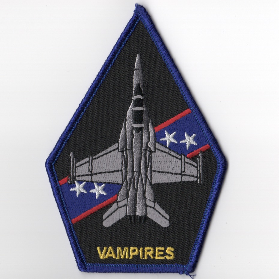 VX-9 is the Air Test and Evaluation Squadron Nine, (AIRTEVRON NINE, commonly referred to by its nickname, The Vampires) is a United States Navy air test and evaluation squadron based at Naval Air Weapons Station China Lake, California. This is their color version of the F/A-18 “VANDY-1” version of the aircraft coffin patch and does not come with velcro attached.