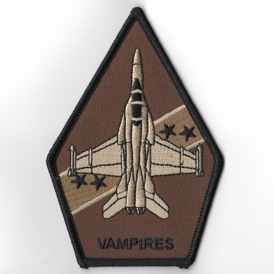VX-9 is the Air Test and Evaluation Squadron Nine, (AIRTEVRON NINE, commonly referred to by its nickname, The Vampires) is a United States Navy air test and evaluation squadron based at Naval Air Weapons Station China Lake, California. This is their desert version of the F/A-18 “VANDY-1” version of the aircraft coffin patch and does not come with velcro attached.