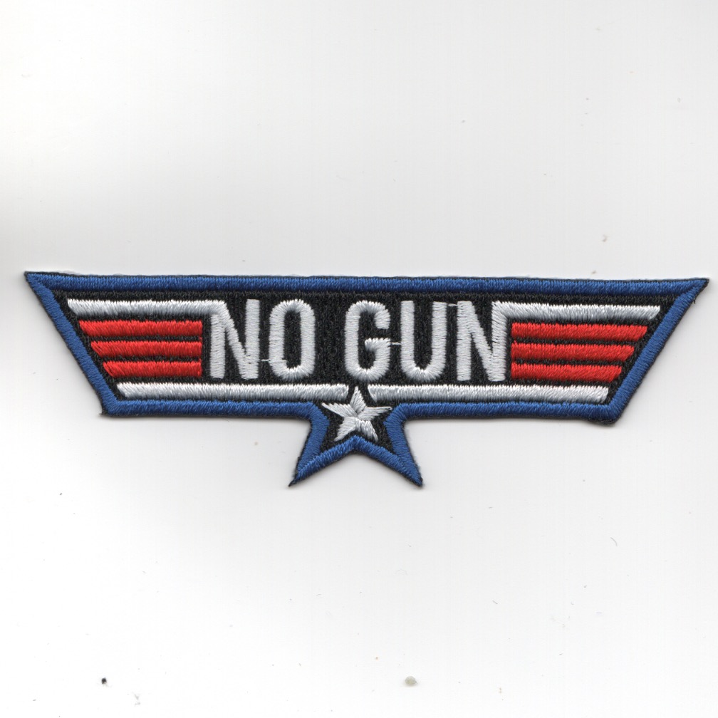This is the “”””NO GUN”””” patch created for VX-9 and several of the VAQ squadrons. It is a take off from the ‘TOPGUN’ logo and does not come with velcro attached.