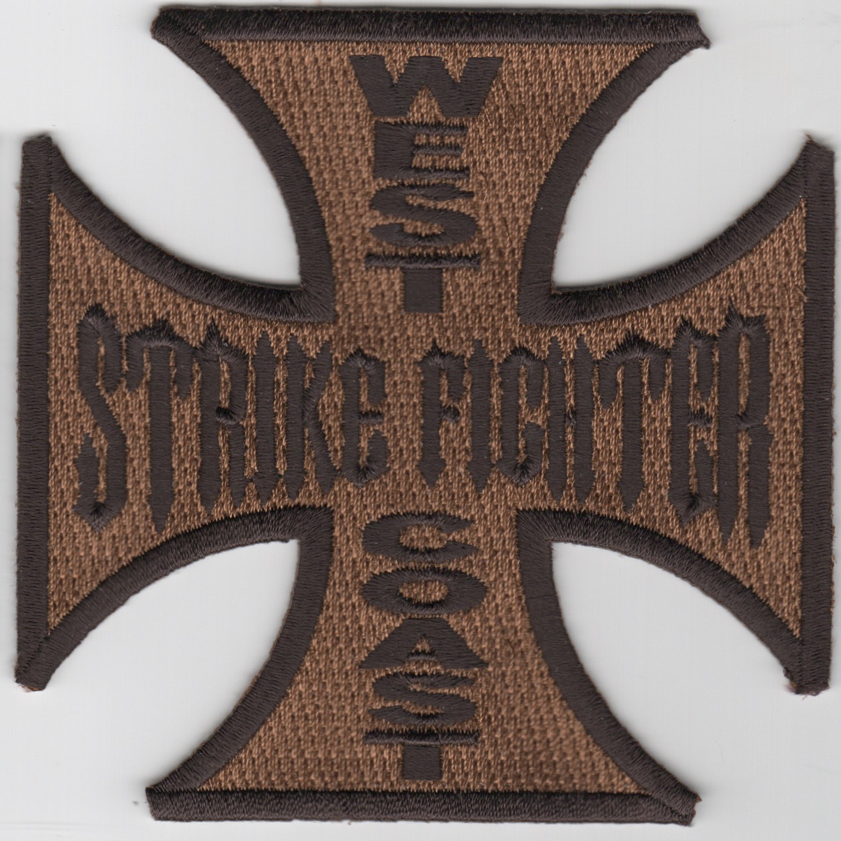 This is the desert version of the “”””West Coast Strike Fighter Maltese Cross”””” patch created for the squadrons that are home-based and fly the F/A-18 Hornet along the Pacific Rim and “”””Left Coast””””. This patch does NOT come with velcro already attached.